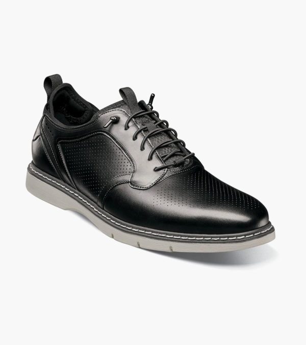 A hybrid mix of sneaker and dress shoe, the Stacy Adams Sync Plain Toe Elastic Lace Up features a rich leather upper with micro-perfing details. The elastic lace system gives it slip on convenience, while the RedZone footbed adds all-day comfort.