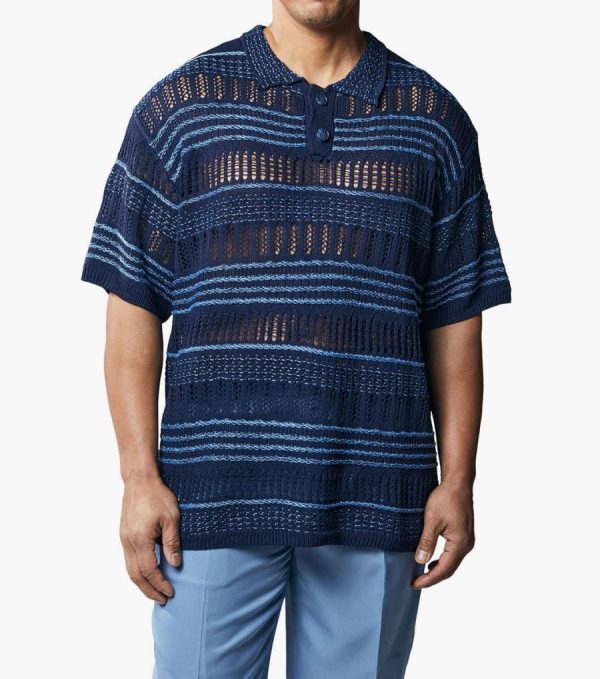 This eye-catching shirt features a multi-striped pattern with a modern cut and a two-button collar making it a standout at any warm weather event.